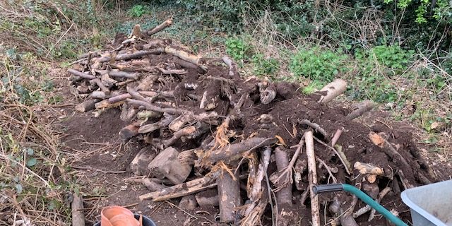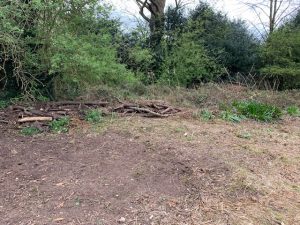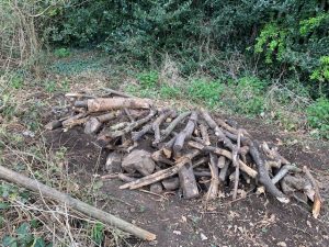 We used the leftover logs, that were a bit too big, to create a ‘dead hedge’. This will be used by passing birds, wood mice, voles and other wildlife to hide from their predators and shelter from bad weather.